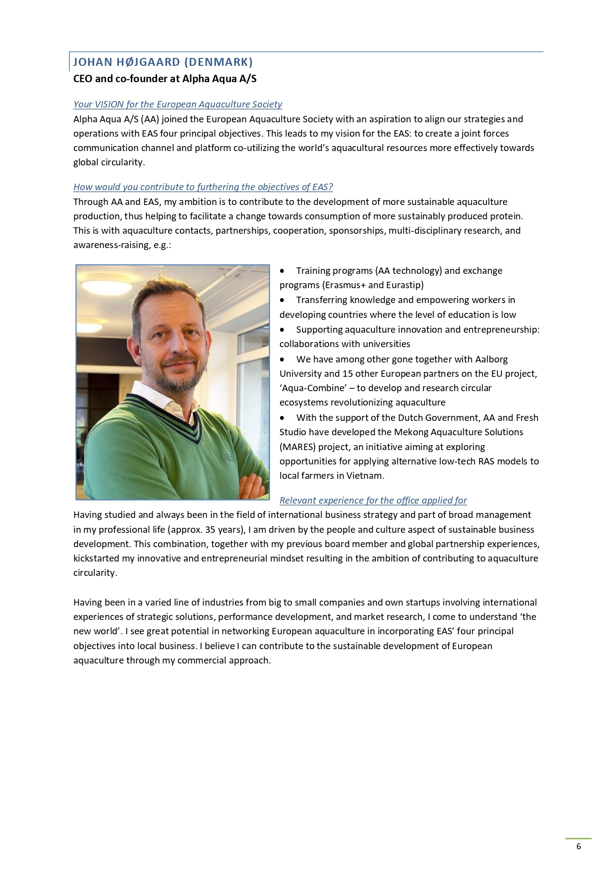 - The european aquaculture society candidates for the board of directors 2018-2020
