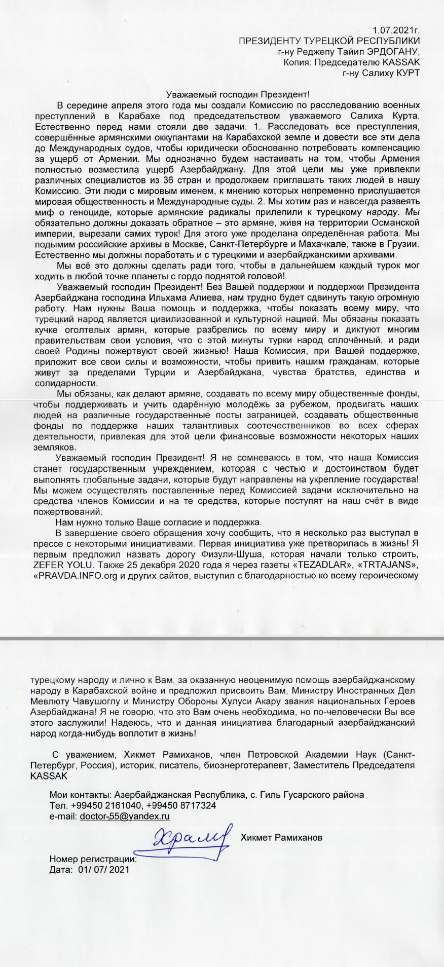Dr. Hikmet Ramixanov'un güven mektubu