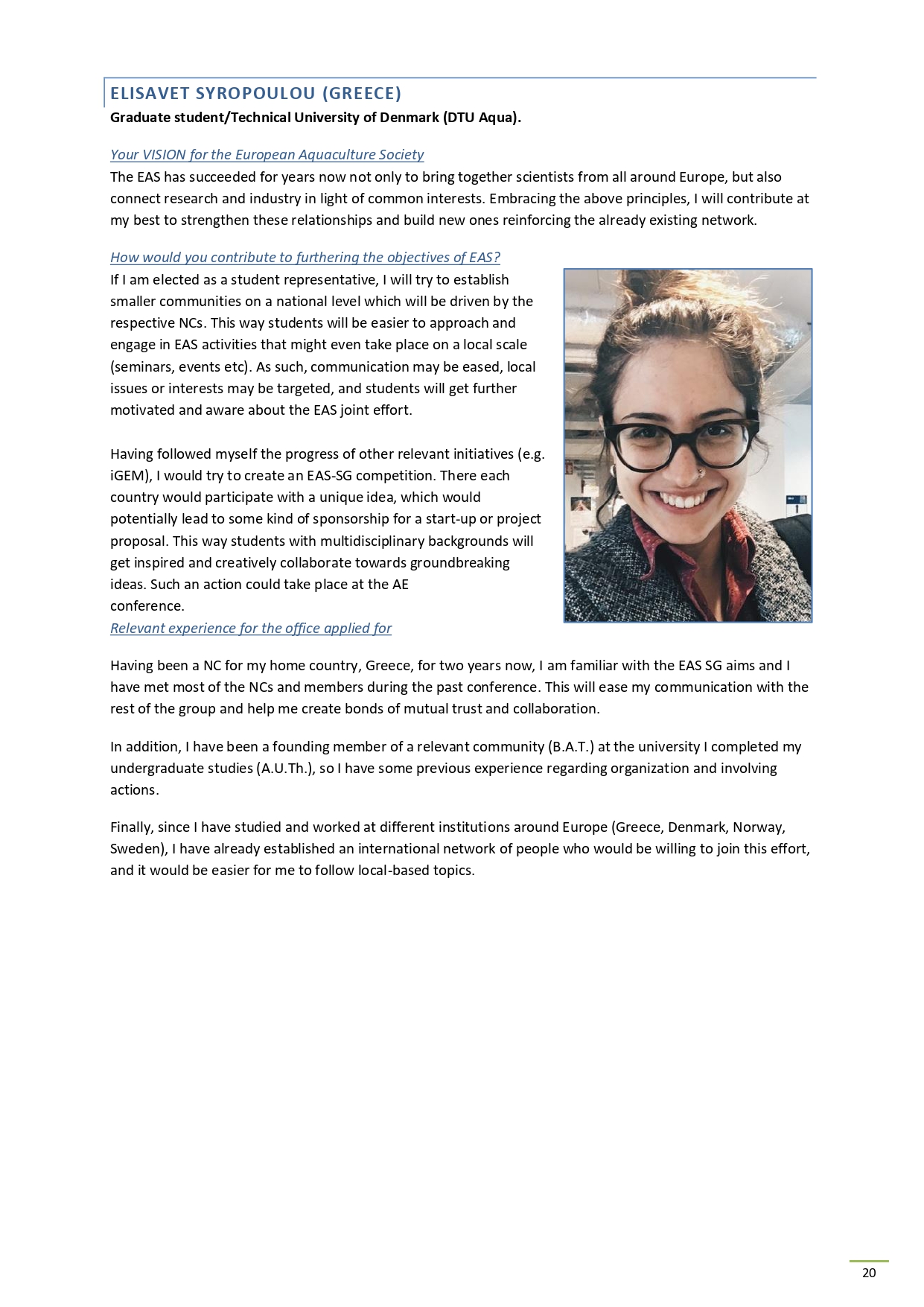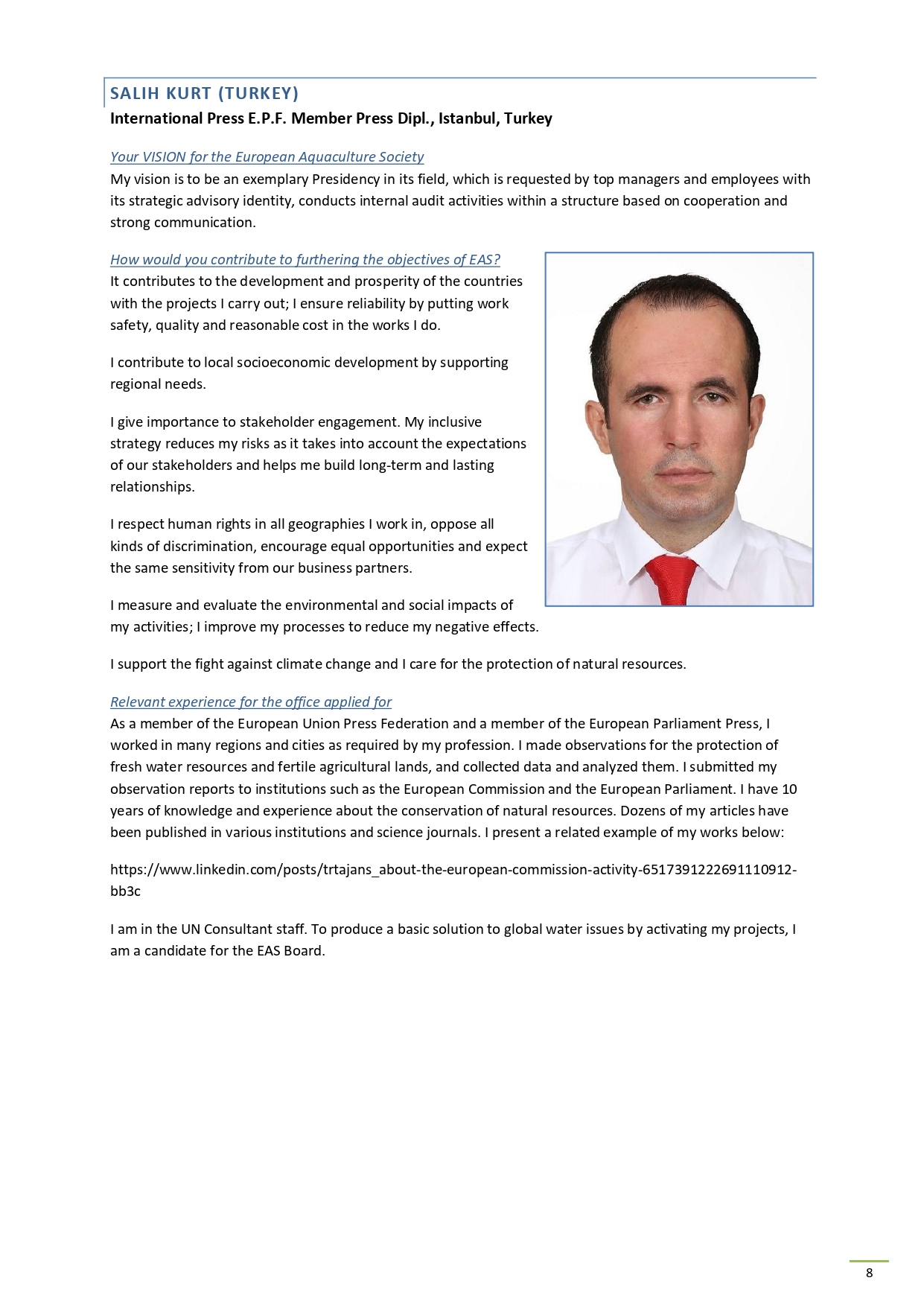 - The european aquaculture society candidates for the board of directors 2018-2020